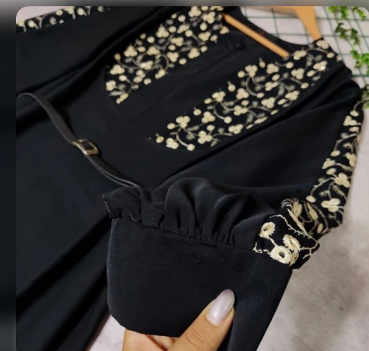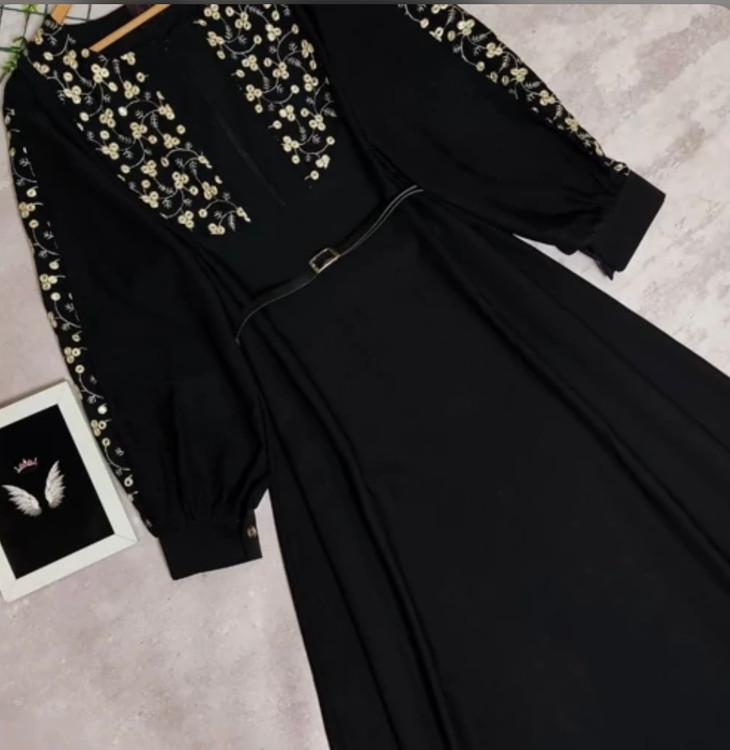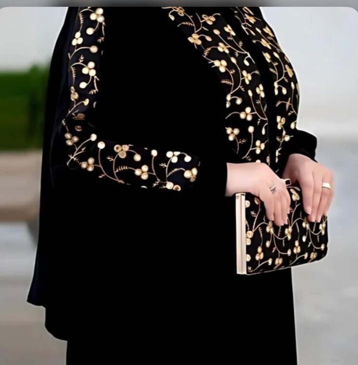 عبا متینا 👚جنس: الیزه با خرج کار هندی 🌈 رنگ بندی: مشکی 📏 سایزبندی: فری سایز 44 تا 52 📝 توضیحات: پرفروش 🔸️قد کار: 140 🔸️دارای زیپ شیردهی مخفی 🔸️مچ دکمه میخوره کمربند ندارد ❌️ کیف ندارد❌️ ارسال فووووری ✅️