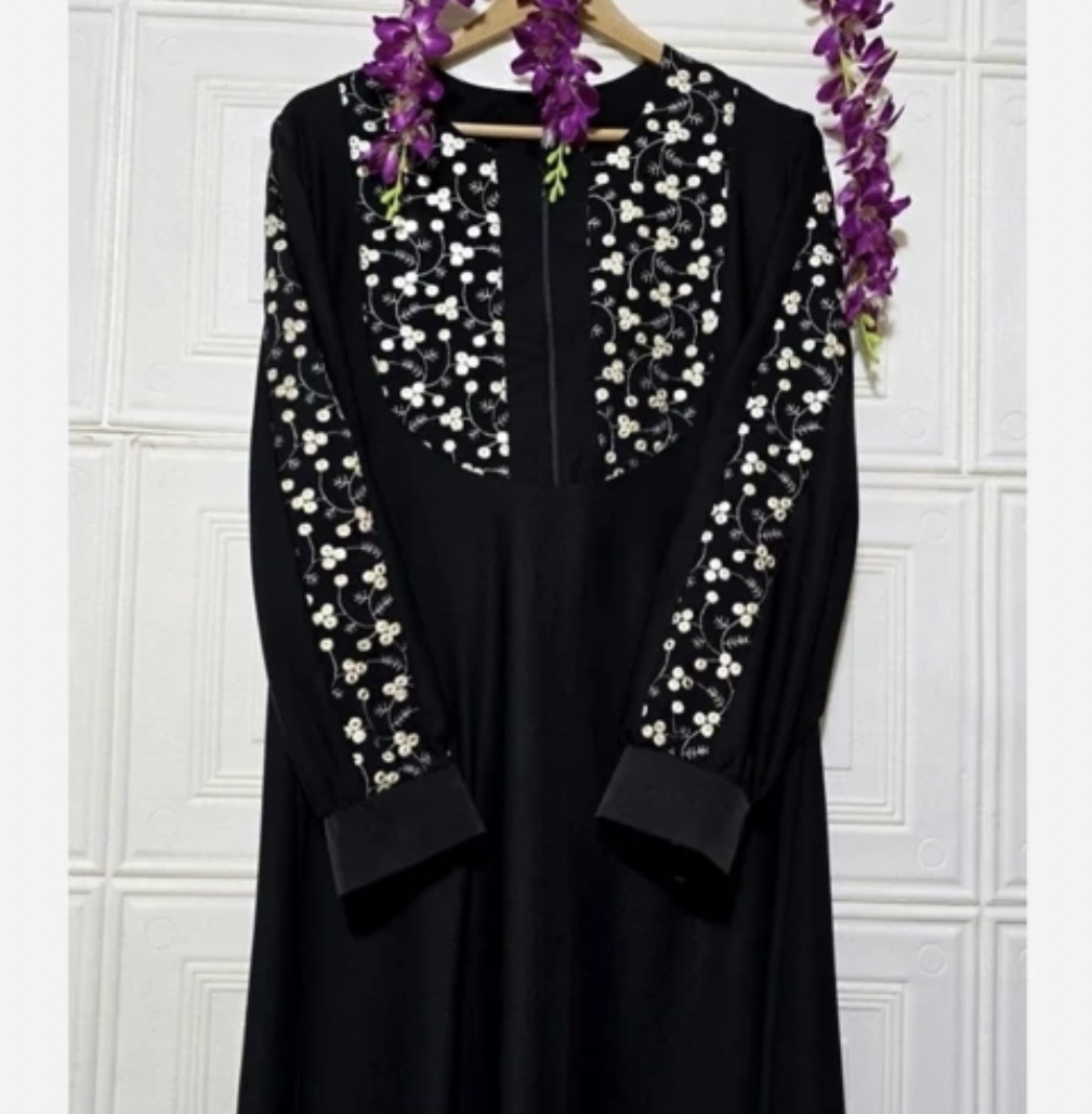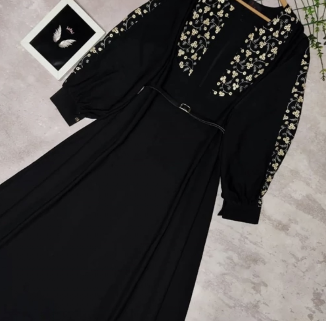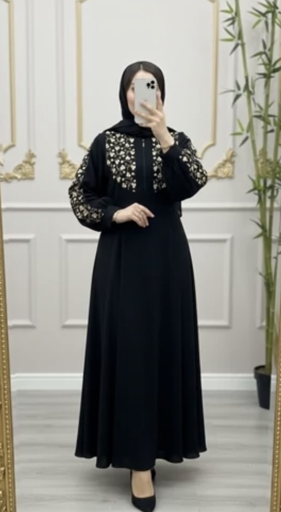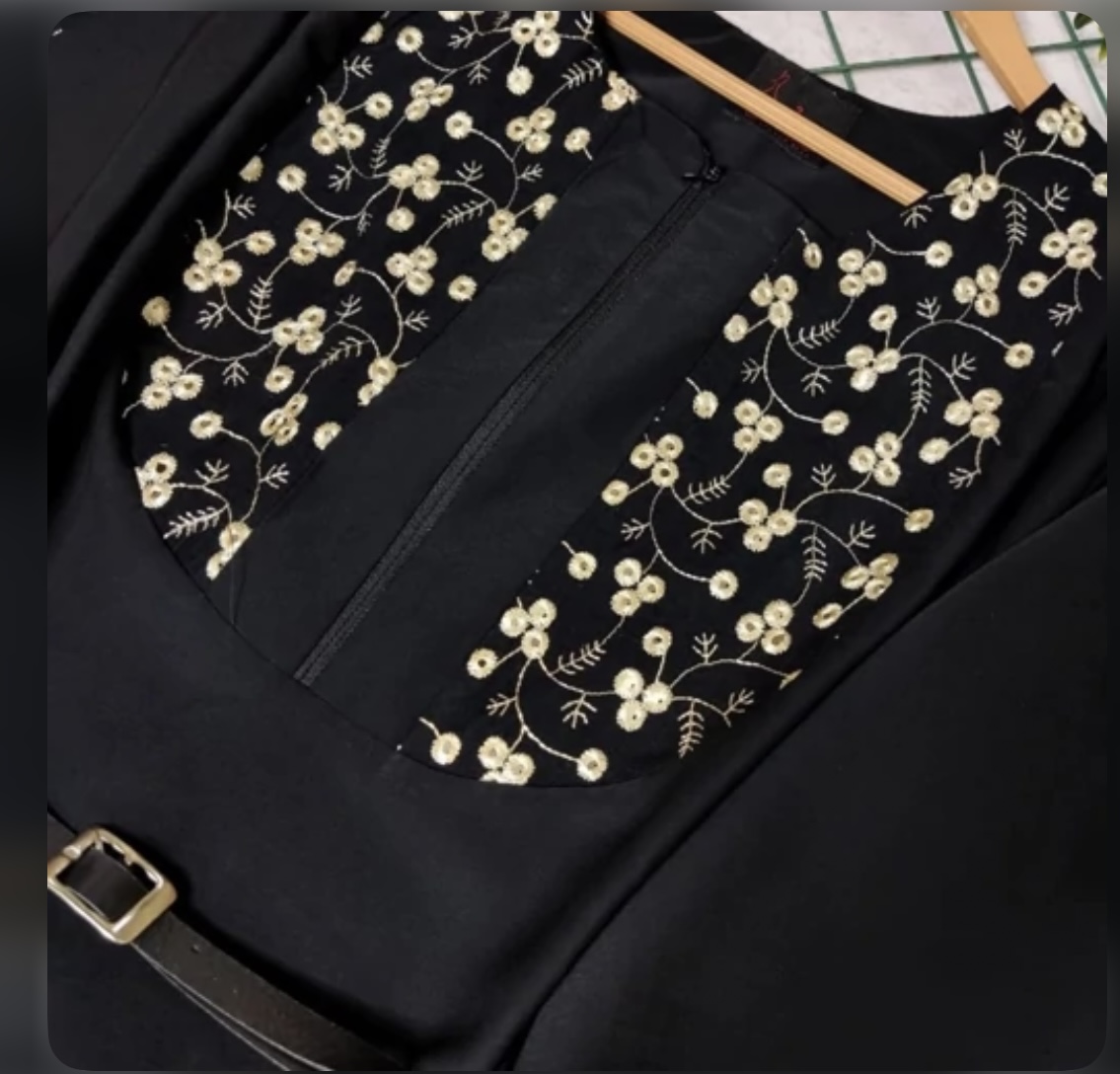 عبا متینا 👚جنس: الیزه با خرج کار هندی 🌈 رنگ بندی: مشکی 📏 سایزبندی: فری سایز 44 تا 52 📝 توضیحات: پرفروش 🔸️قد کار: 140 🔸️دارای زیپ شیردهی مخفی 🔸️مچ دکمه میخوره کمربند ندارد ❌️ کیف ندارد❌️ ارسال فووووری ✅️